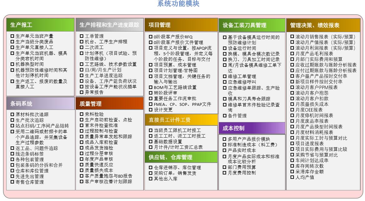 含客户报价系统 APQP项目管理系统 BOM和工艺路线管理 设计变更 产品EOL管理.